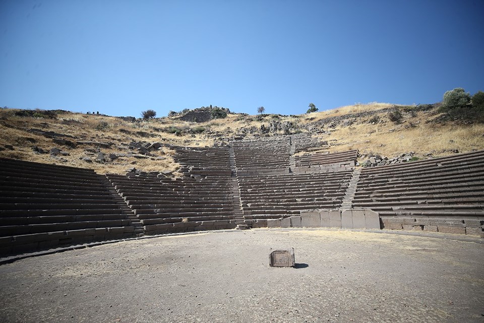 Assos’taki tiyatro, antik kent agorasının güneyindeki doğal kayalıklara dayanmaktadır. Milattan önce 4. yüzyılda inşa edilen tiyatro, Roma Dönemi’nde çeşitli eklemelerle kullanılmıştır.