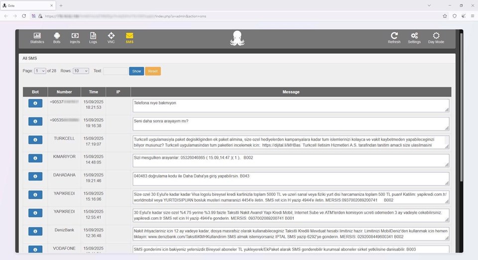 Bu zararlı yazılımlar aracılığıyla cihazların tam kontrolü ele geçirilerek vatandaşların haberi olmadan “Hızlı Geçiş Sistemi (HGS) borcunuz var” ve “PTT kargo teslim alınmamış kargonuz var” gibi sahte SMS’ler gönderildiği belirlendi.