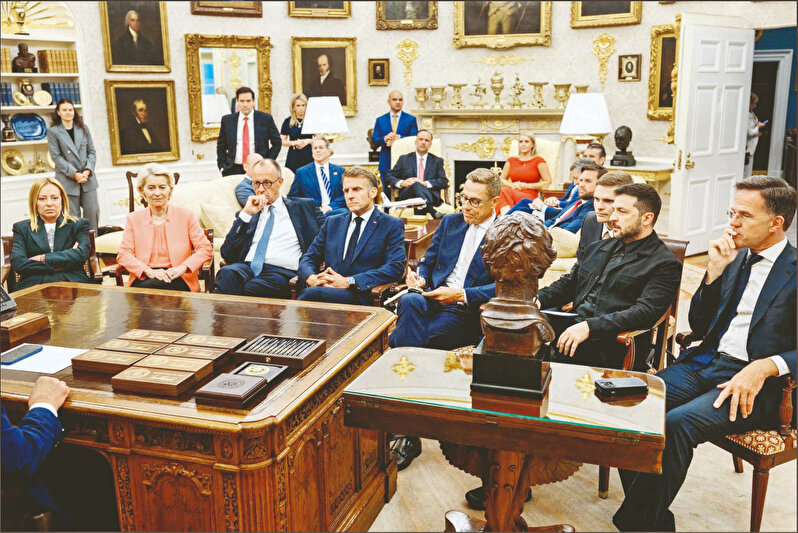 Fotoğrafta, Trump’ın en solunda İngiltere Başbakanı Keir Starmer otururken, onu İtalya Başbakanı Giorgia Meloni, Avrupa Komisyonu Başkanı Ursula von der Leyen, Almanya Şansölyesi Friedrich Merz,