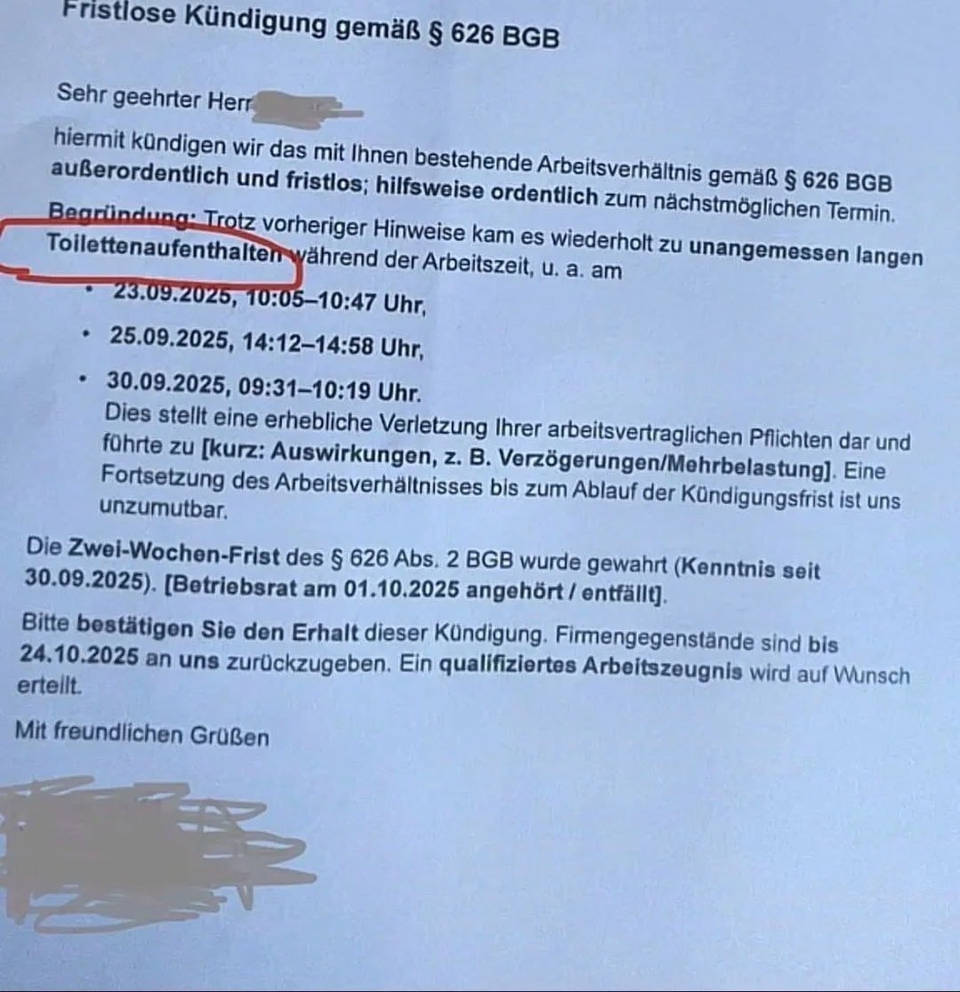 Söz konusu ekran görüntüsünün kaynağı hâlâ belirsiz. Almanya merkezli paylaşımlardan sonra İsviçre basınından Blick de haberi gündeme taşıdı. Ancak, olayın gerçek bir fesih mi yoksa internet mizahı mı olduğu kesinleşmedi. Buna rağmen tartışma ülke genelinde büyüdü ve “çalışan tuvalette ne kadar kalabilir?” sorusu yeniden gündeme geldi.
